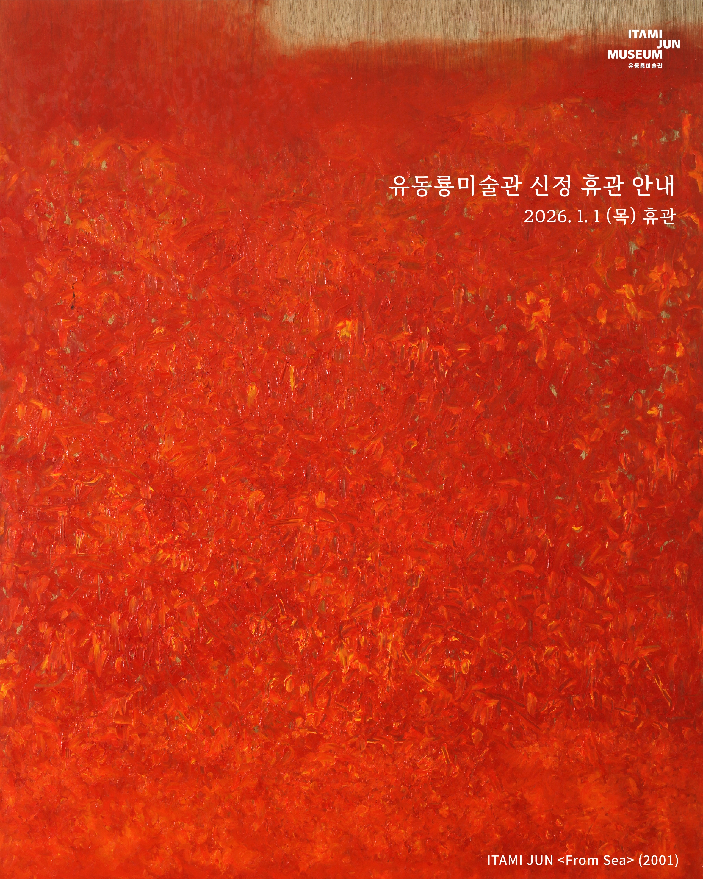 유동룡미술관은 1월 1일 새해 휴관하오니, 연말, 연초 미술관을 방문하시는 일정에 참고 부탁드립니다. 2026년은 병오년, 붉은말의 해라고 합니다. 다가오는 한 해에도 강한 기운으로 이루고자 하는 모든 일들 성취하시기를 바랍니다. 새해 복 많이 받으세요!!! |